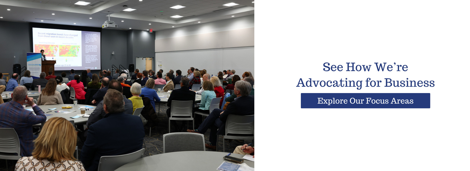 The Chamber has endorsed five focus areas for its public policy advocacy in 2025: Economic Vitality; Education & Workforce Training; Diversity, Equity & Inclusion; Infrastructure; and Housing.