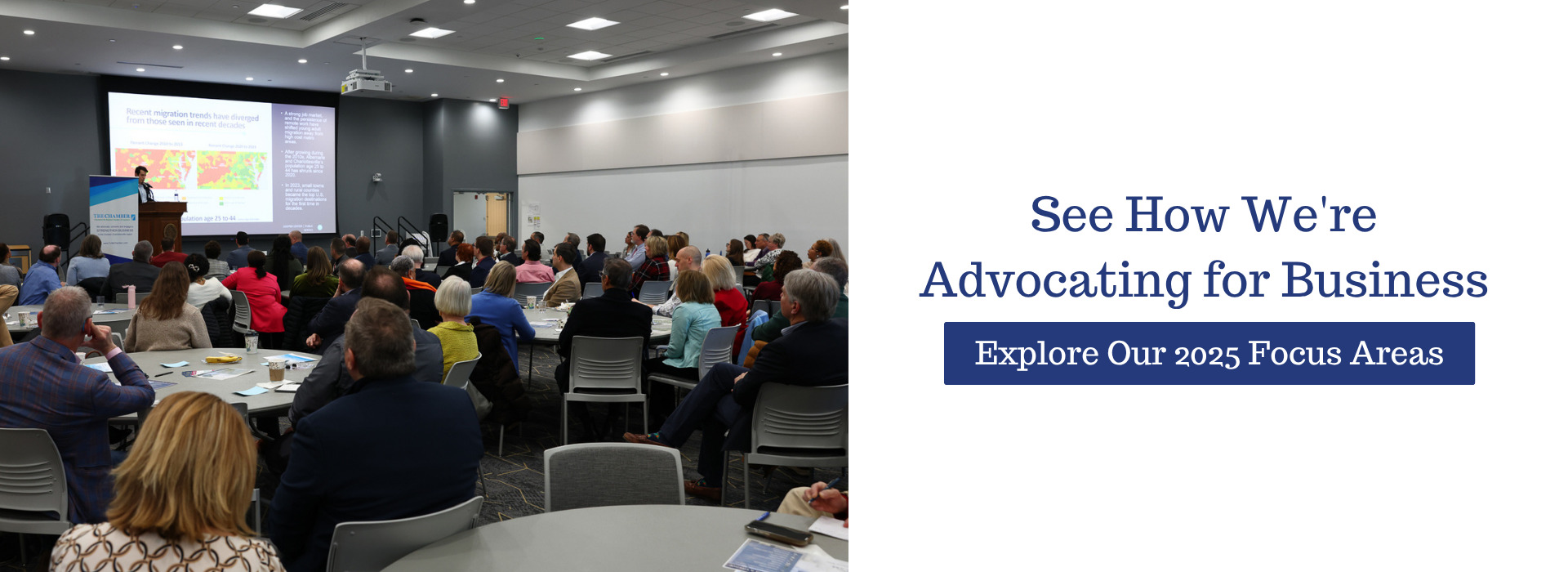 The Chamber has endorsed five focus areas for its public policy advocacy in 2025: Economic Vitality; Education & Workforce Training; Diversity, Equity & Inclusion; Infrastructure; and Housing.